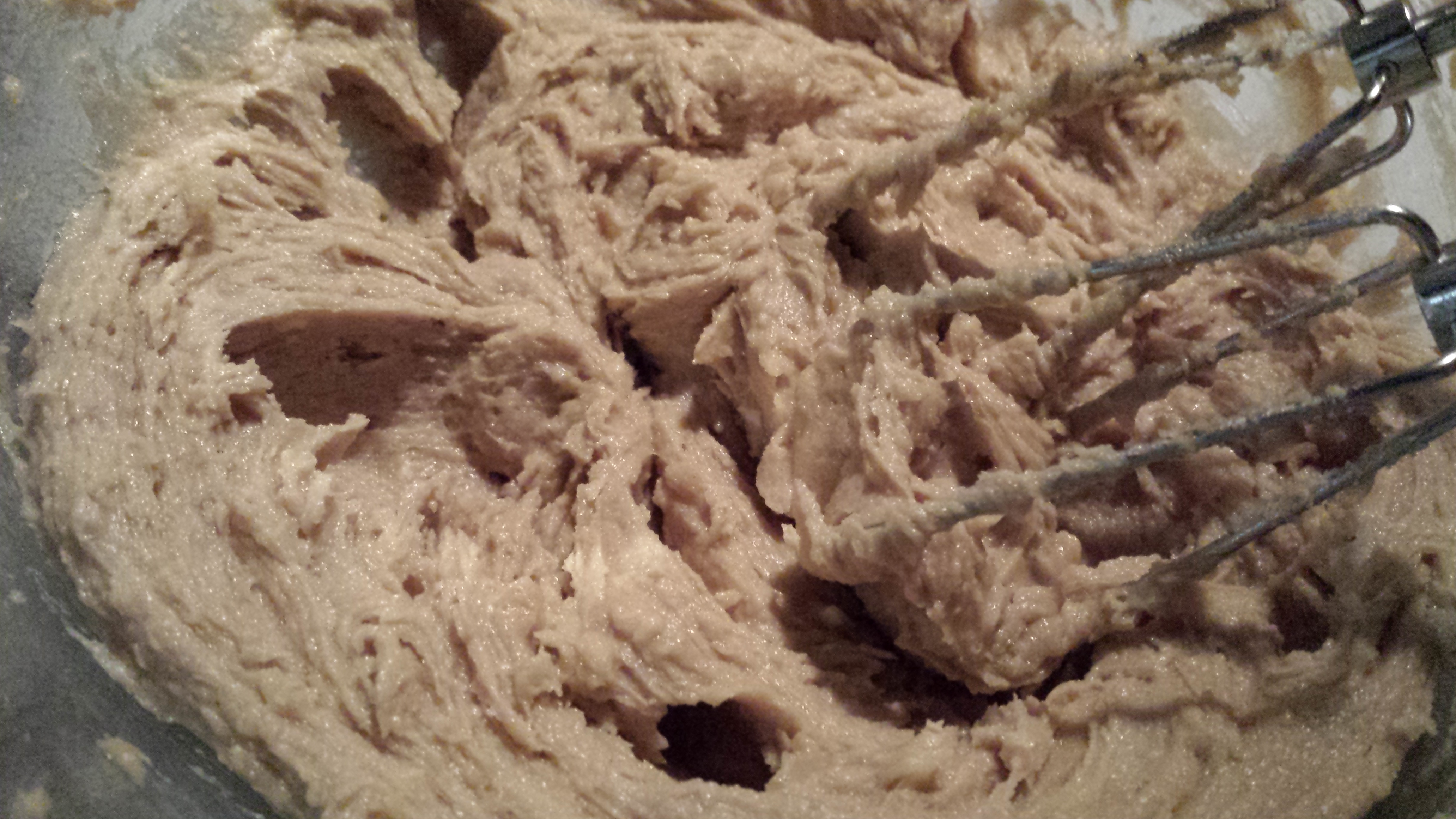 2. Slowly add eggs and vanilla, mix thoroughly.