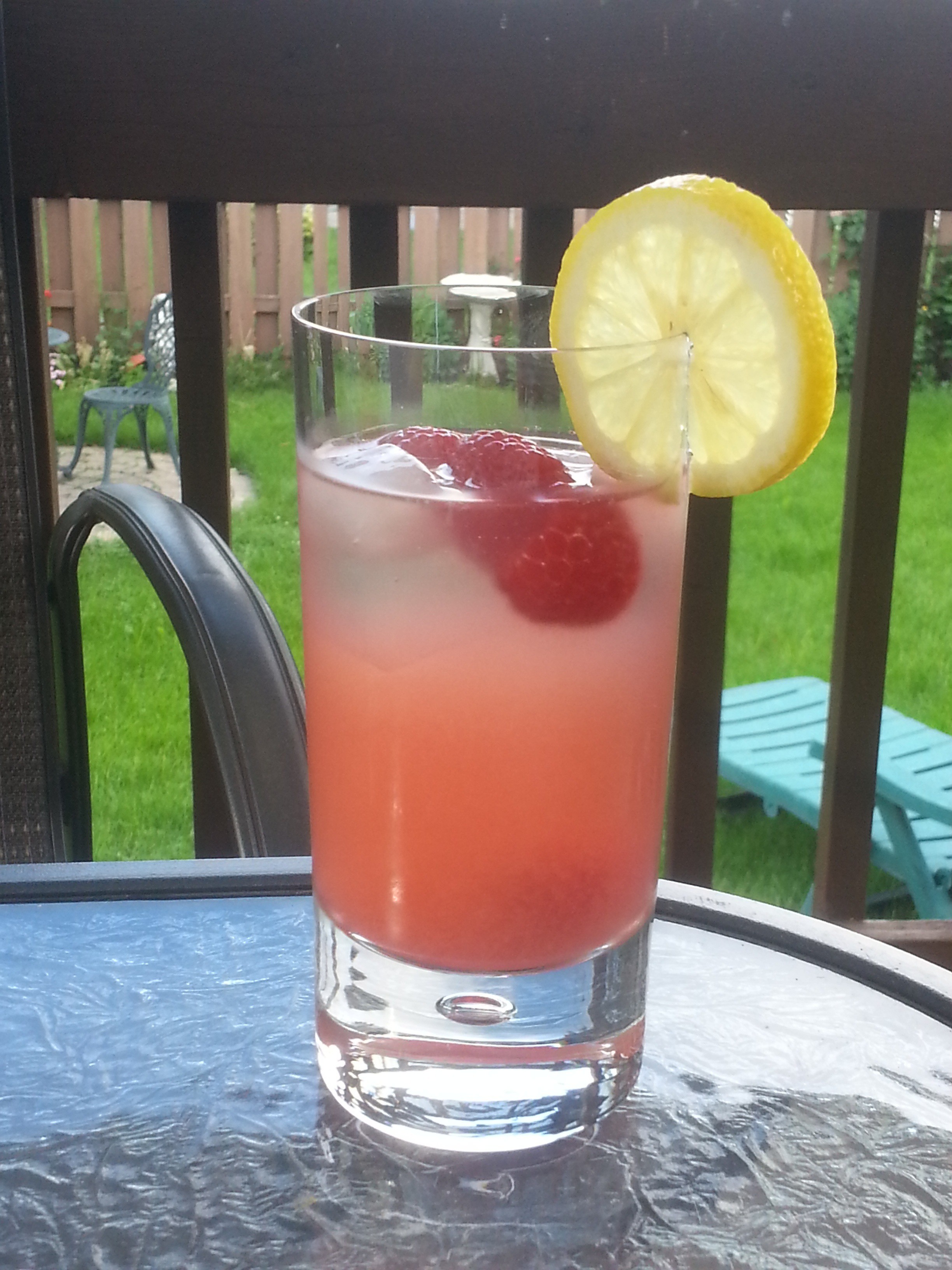 3. Top with club soda, a lemon wheel, and a few raspberries.