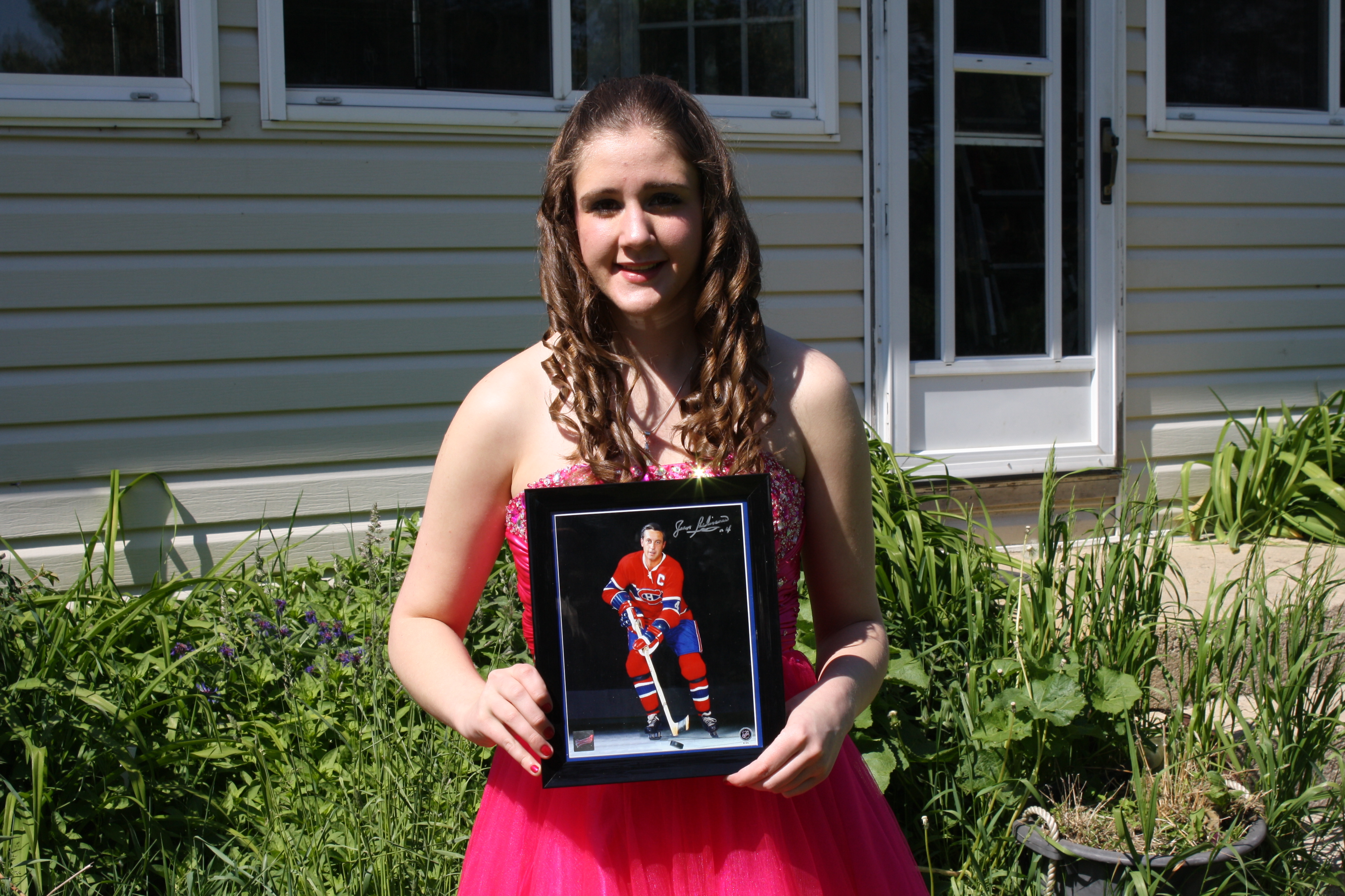 Cailtlyn now is the proud owner of a 8 x 10 autographed picture of Jean Beliveau courtesy of Frameworth Sports Marketing.